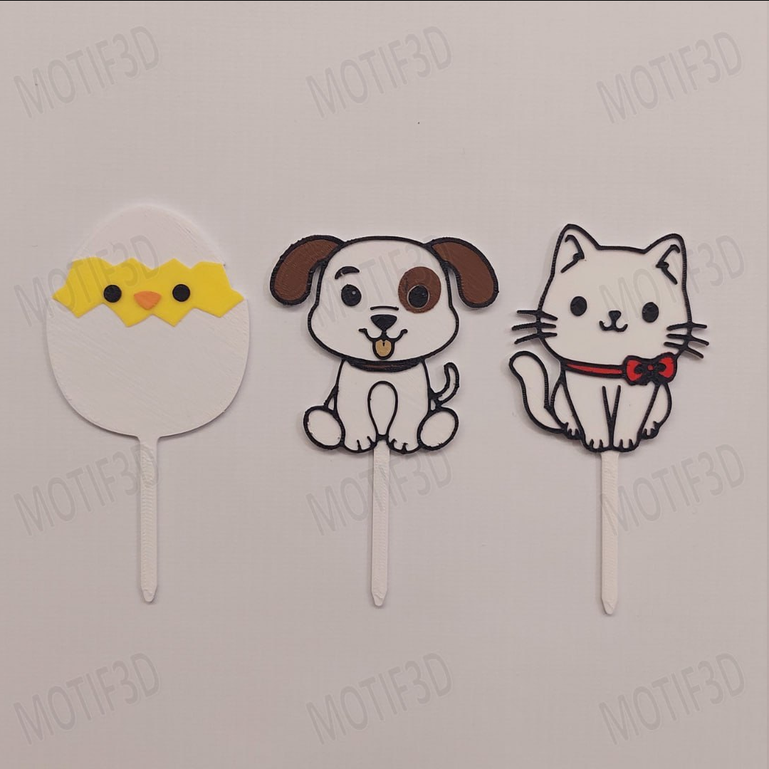 Toppers Animales Perro Gato Pollito 6cm y 9cm